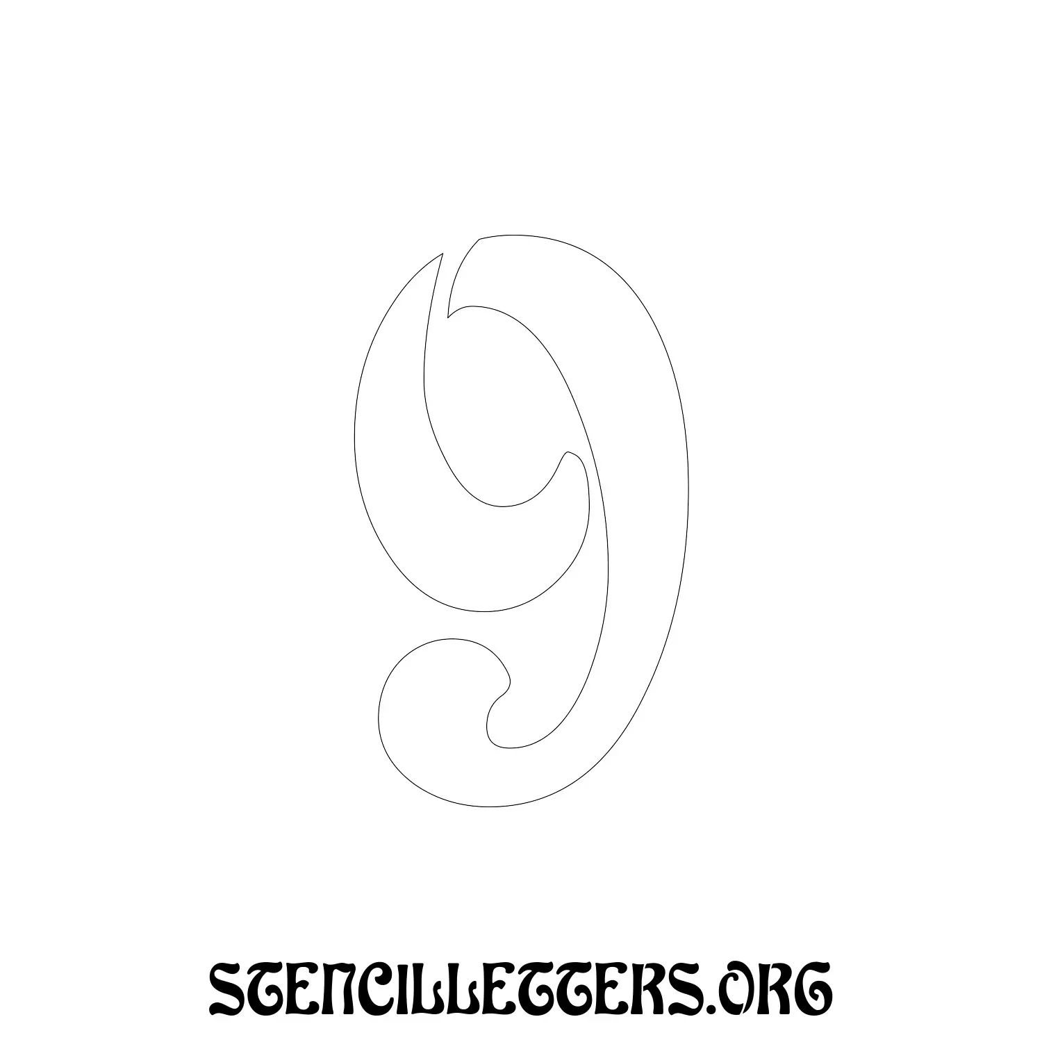 Printable Individual 0-9 Number stencils design 196 Art Nouveau in 5 inch numbers high-resolution templates size.