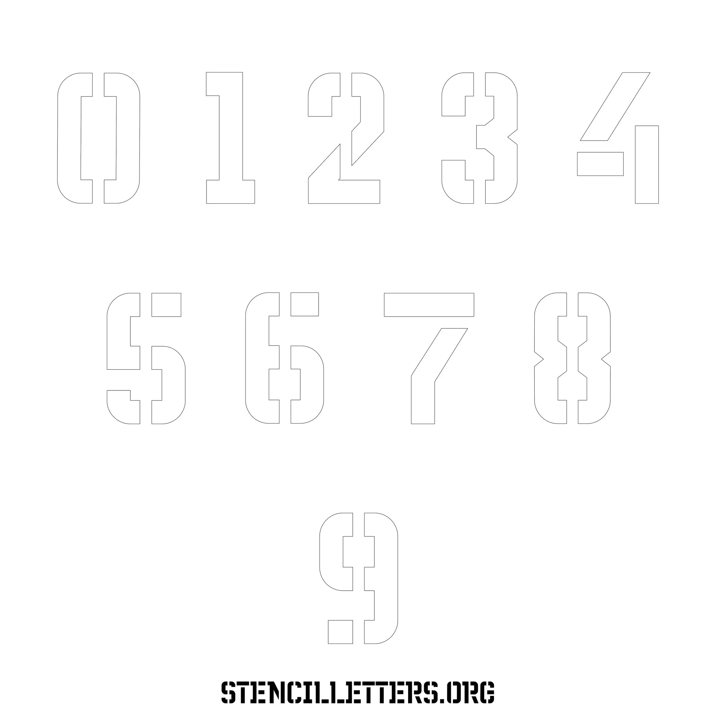 Stencil Design 230 Futuristic. Print these free numbers stencils and make your own DIY templates for your stenciling projects. Available in high resolution printable sizes: 4 Inch, 5 Inch, 6 Inch, 7 Inch, 8 Inch, 9 Inch and 10 Inch.