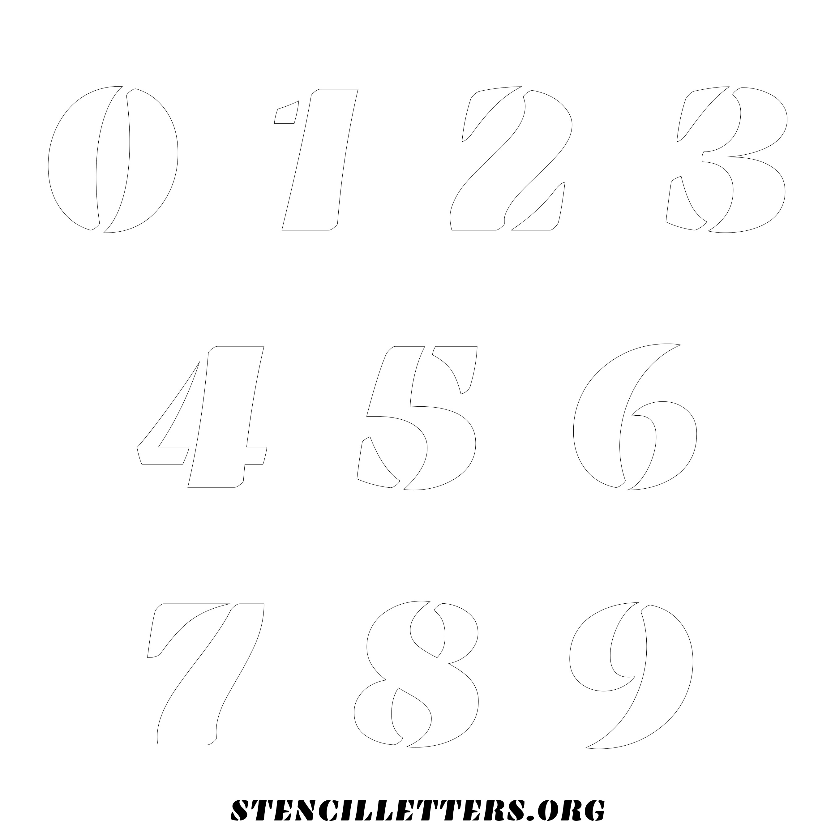 Stencil Design 269 Bold. Print these free numbers stencils and make your own DIY templates for your stenciling projects. Available in high resolution printable sizes: 4 Inch, 5 Inch, 6 Inch, 7 Inch, 8 Inch, 9 Inch and 10 Inch.
