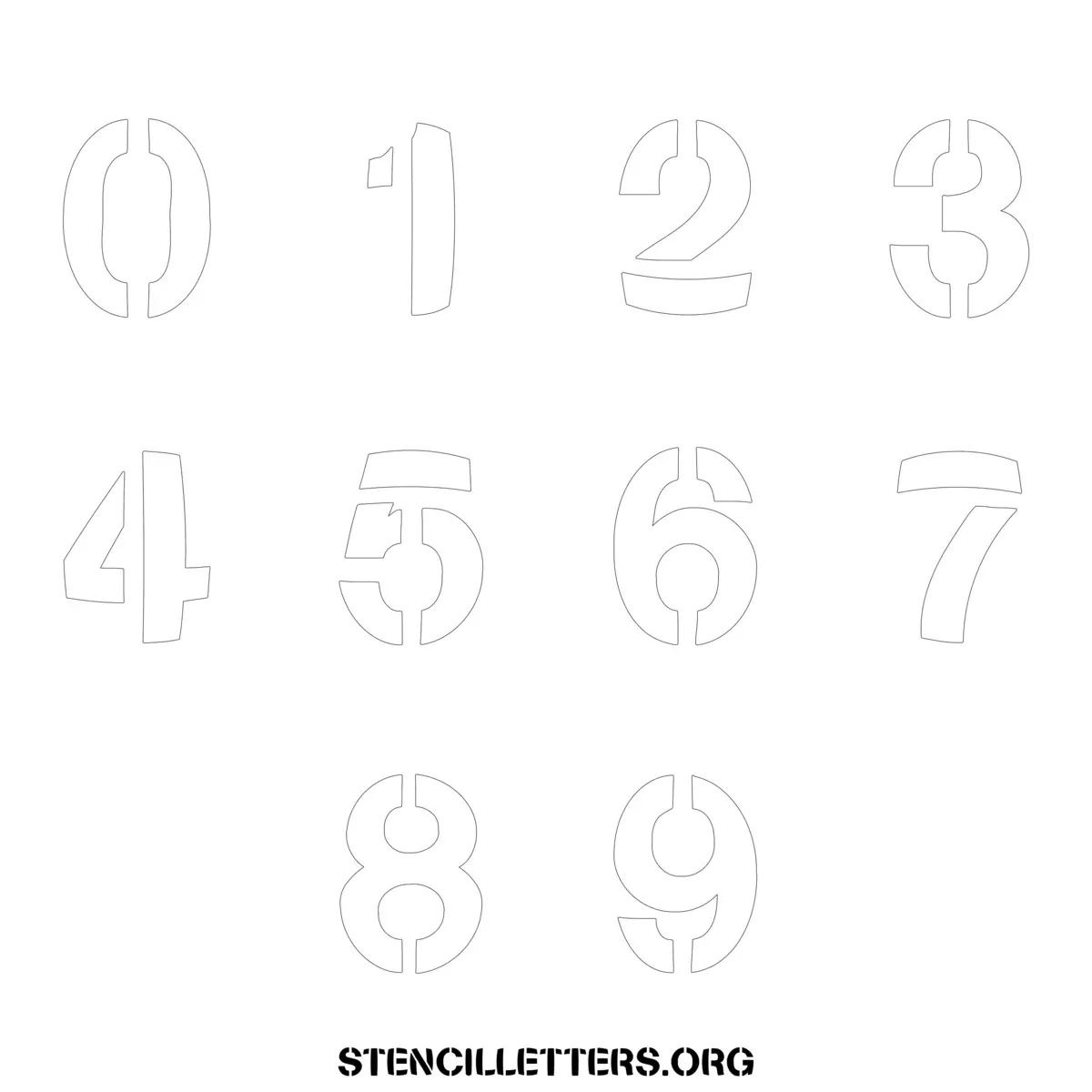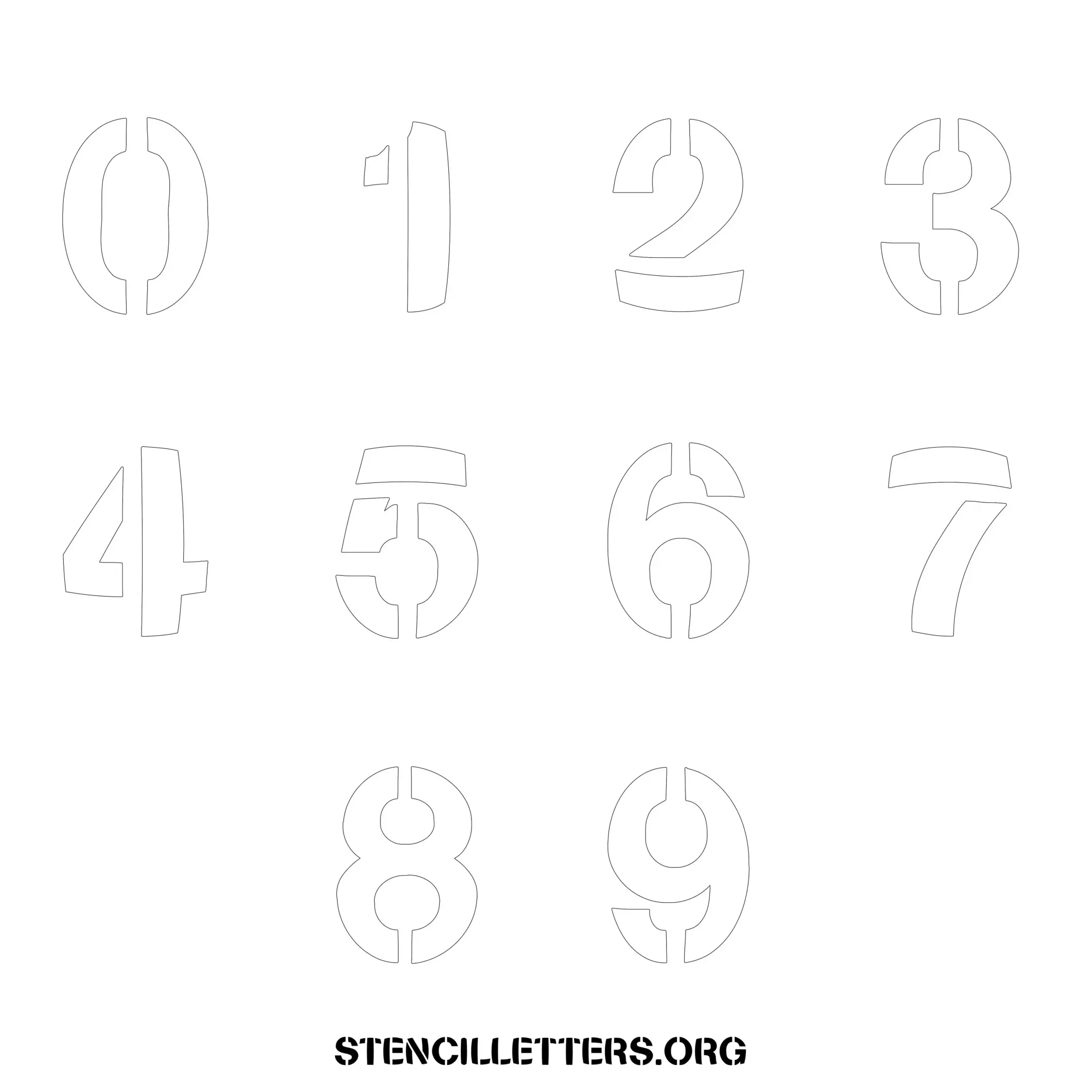 Stencil Design 281 Bold. Print these free numbers stencils and make your own DIY templates for your stenciling projects. Available in high resolution printable sizes: 4 Inch, 5 Inch, 6 Inch, 7 Inch, 8 Inch, 9 Inch and 10 Inch.