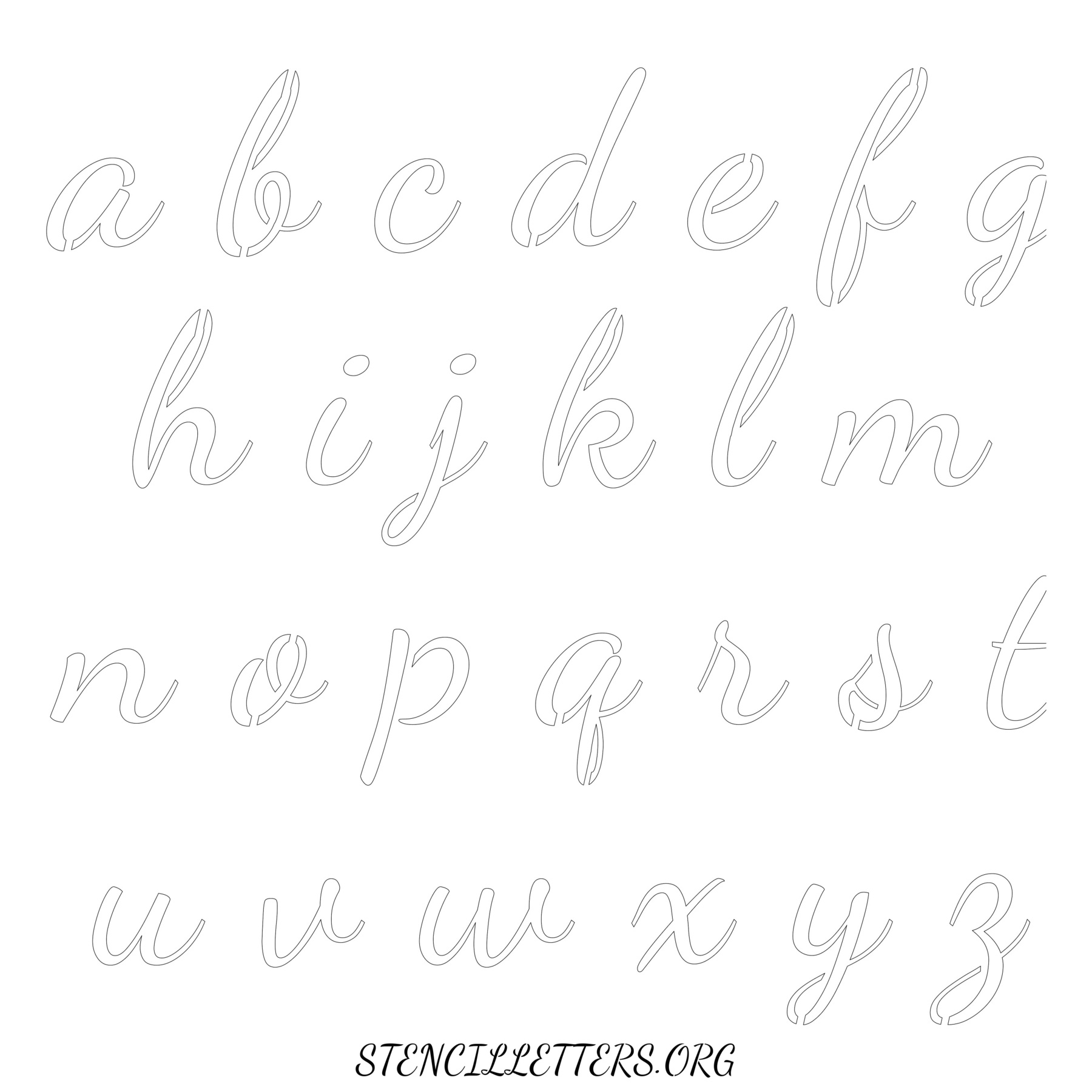 Stencil Design 133 Cursive. Print these free lowercase letter stencils and make your own DIY templates for your stenciling projects. Available in high resolution printable sizes: 4 Inch, 5 Inch, 6 Inch, 7 Inch, 8 Inch, 9 Inch and 10 Inch.