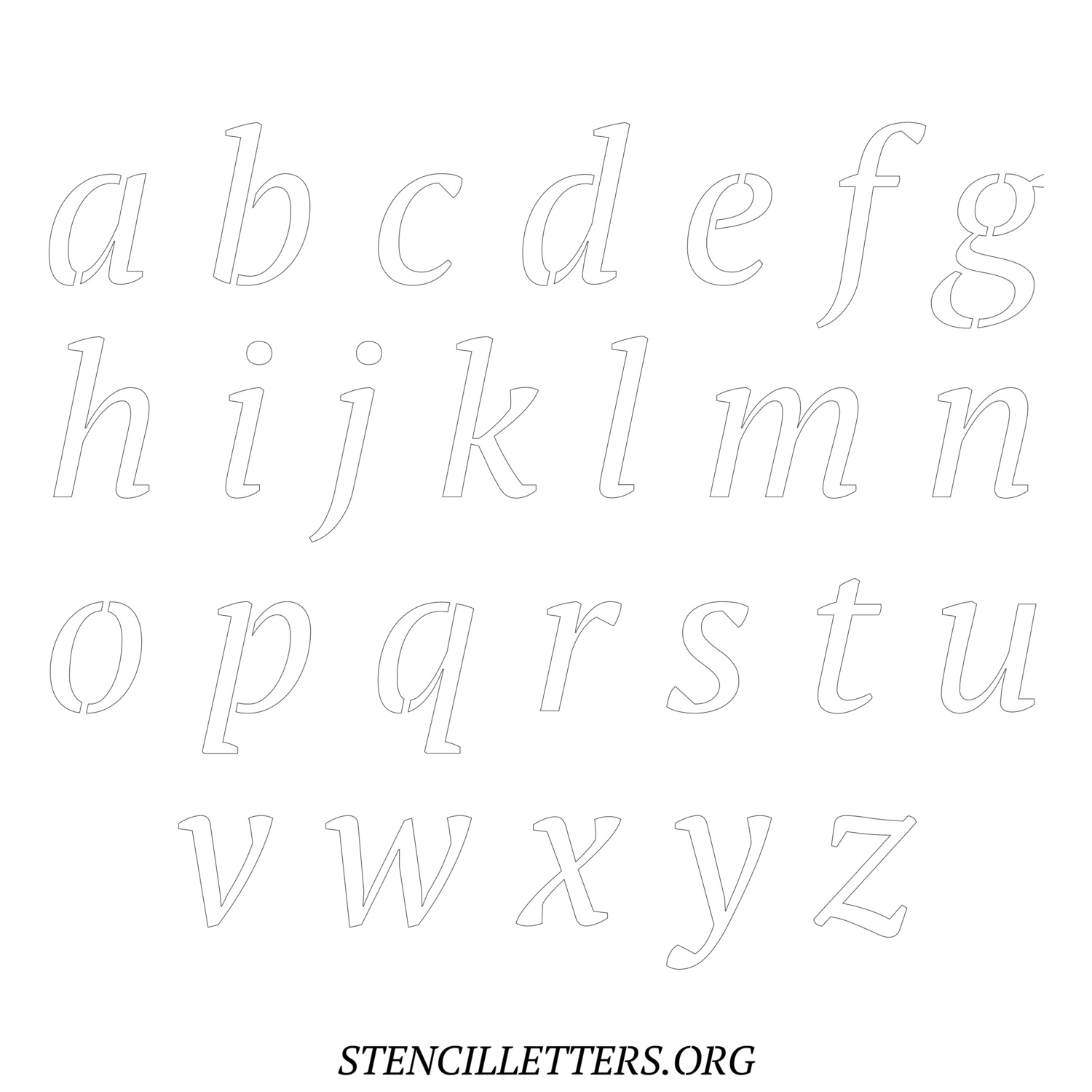 Printable Lowercase Alphabet Stencils - Design 50 Italic