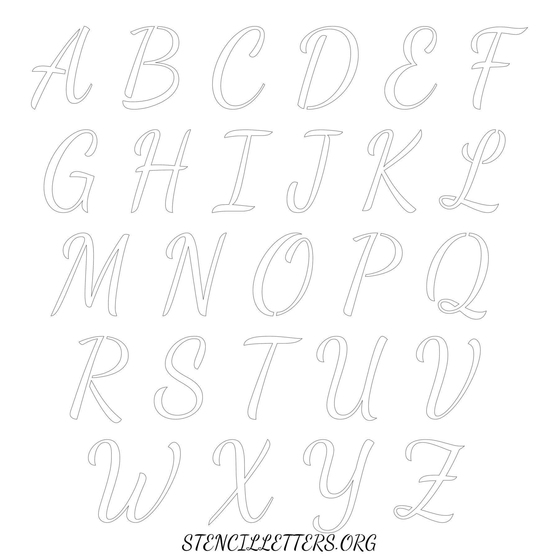 Stencil Design 133 Cursive. Print these free uppercase letter stencils and make your own DIY templates for your stenciling projects. Available in high resolution printable sizes: 4 Inch, 5 Inch, 6 Inch, 7 Inch, 8 Inch, 9 Inch and 10 Inch.