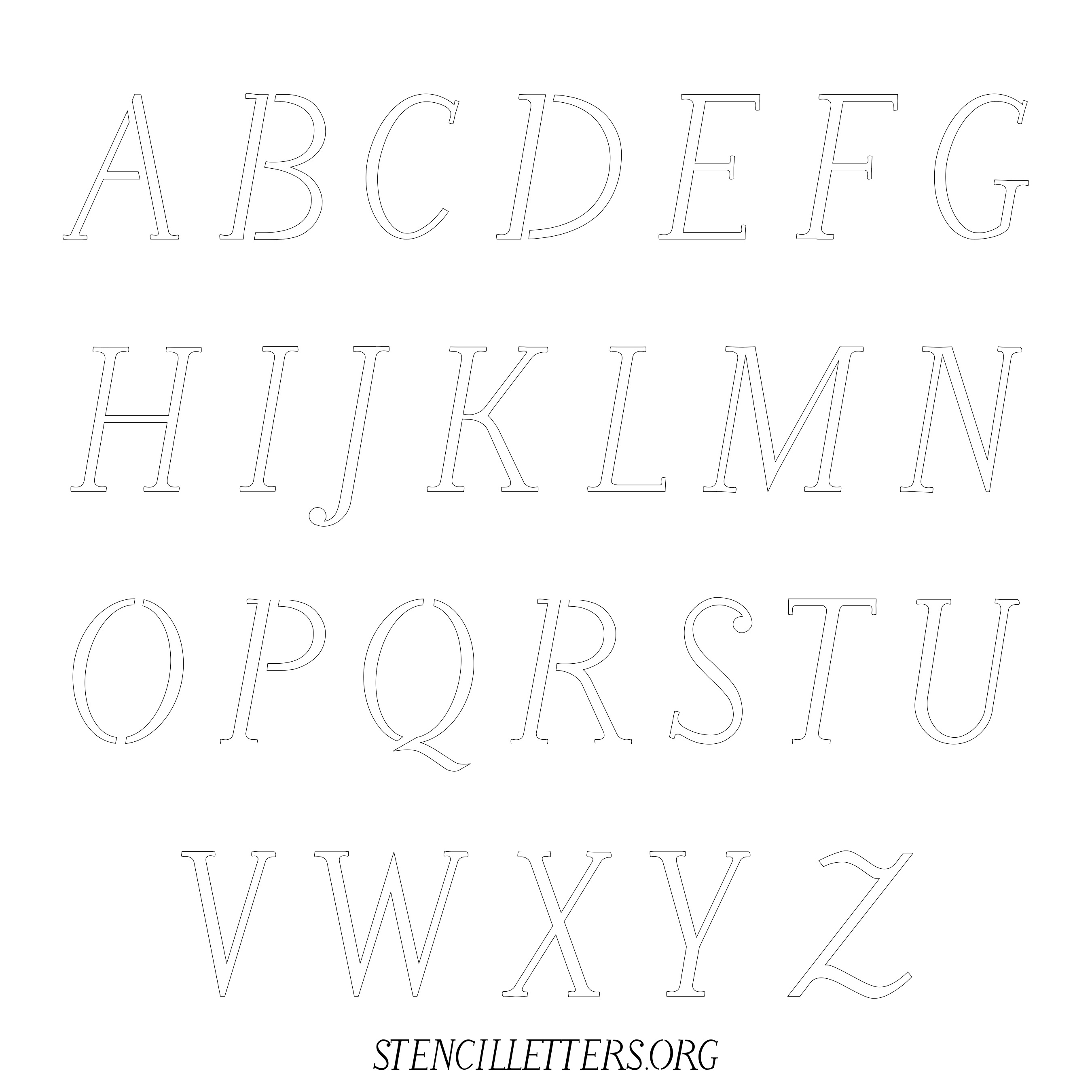Stencil Design 168 Calligraphy. Print these free uppercase letter stencils and make your own DIY templates for your stenciling projects. Available in high resolution printable sizes: 4 Inch, 5 Inch, 6 Inch, 7 Inch, 8 Inch, 9 Inch and 10 Inch.