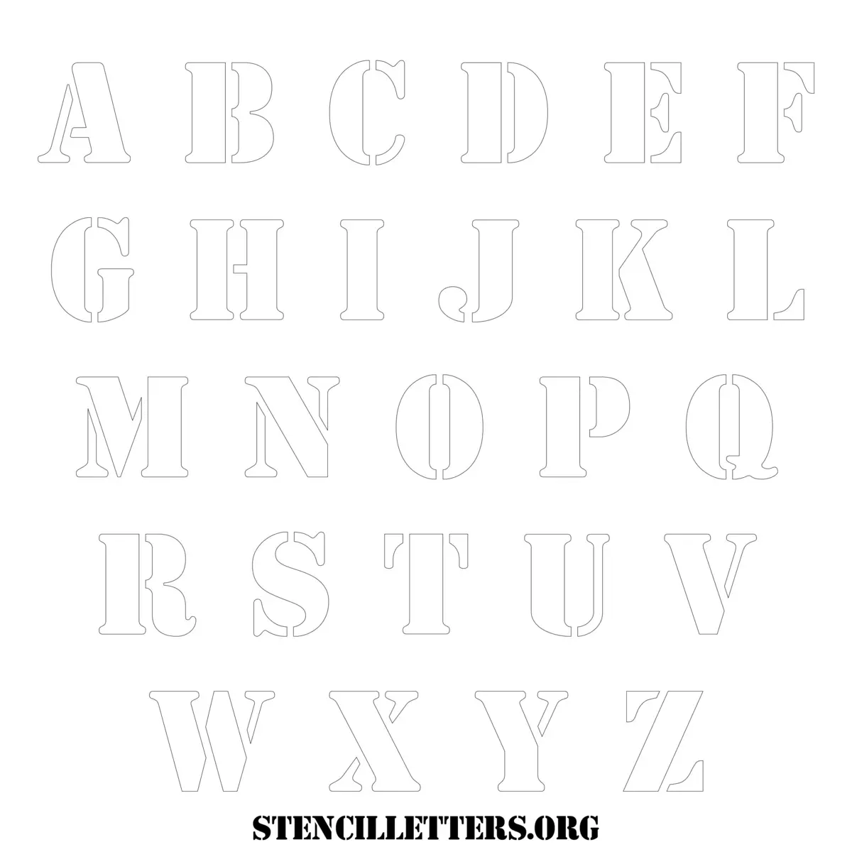 Stencil Design 253 Army. Print these free uppercase letter stencils and make your own DIY templates for your stenciling projects. Available in high resolution printable sizes: 4 Inch, 5 Inch, 6 Inch, 7 Inch, 8 Inch, 9 Inch and 10 Inch.