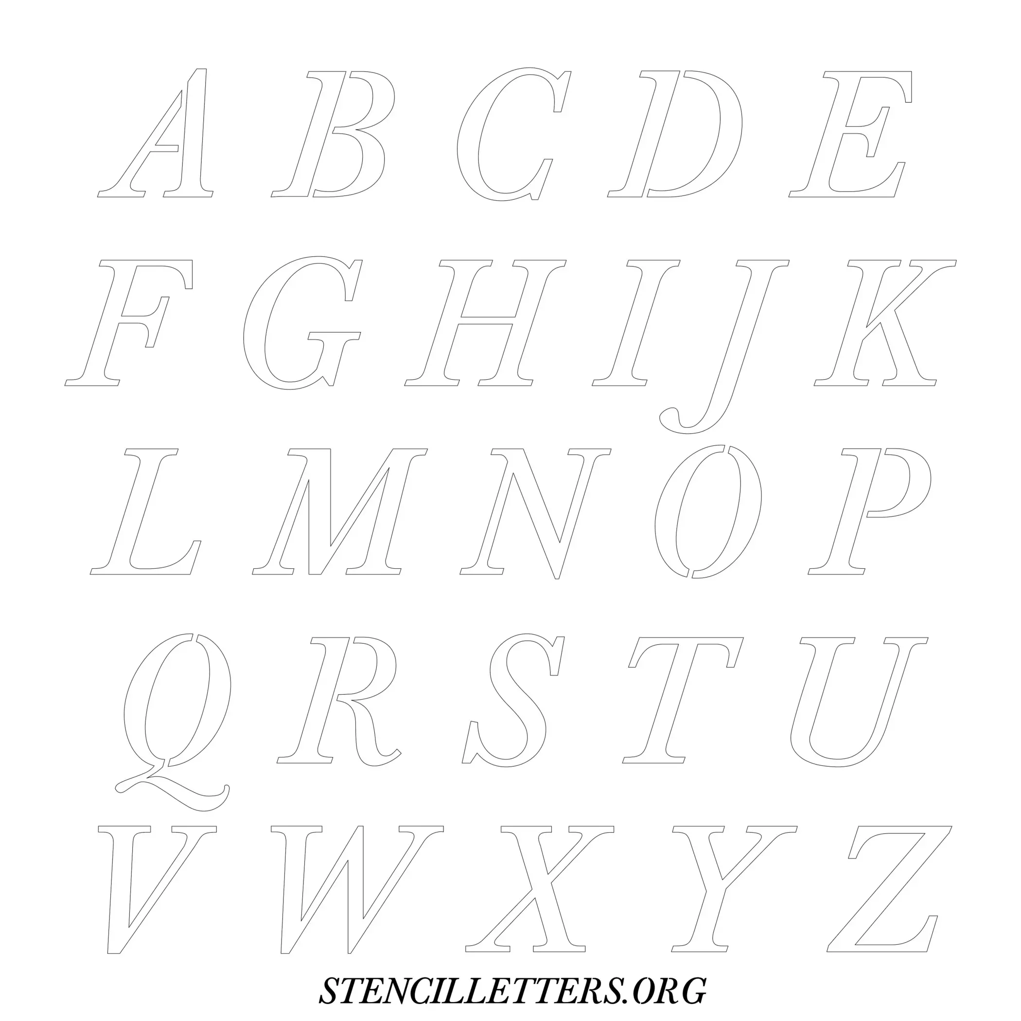 Printable Uppercase Alphabet Stencils - Design 32 Italic
