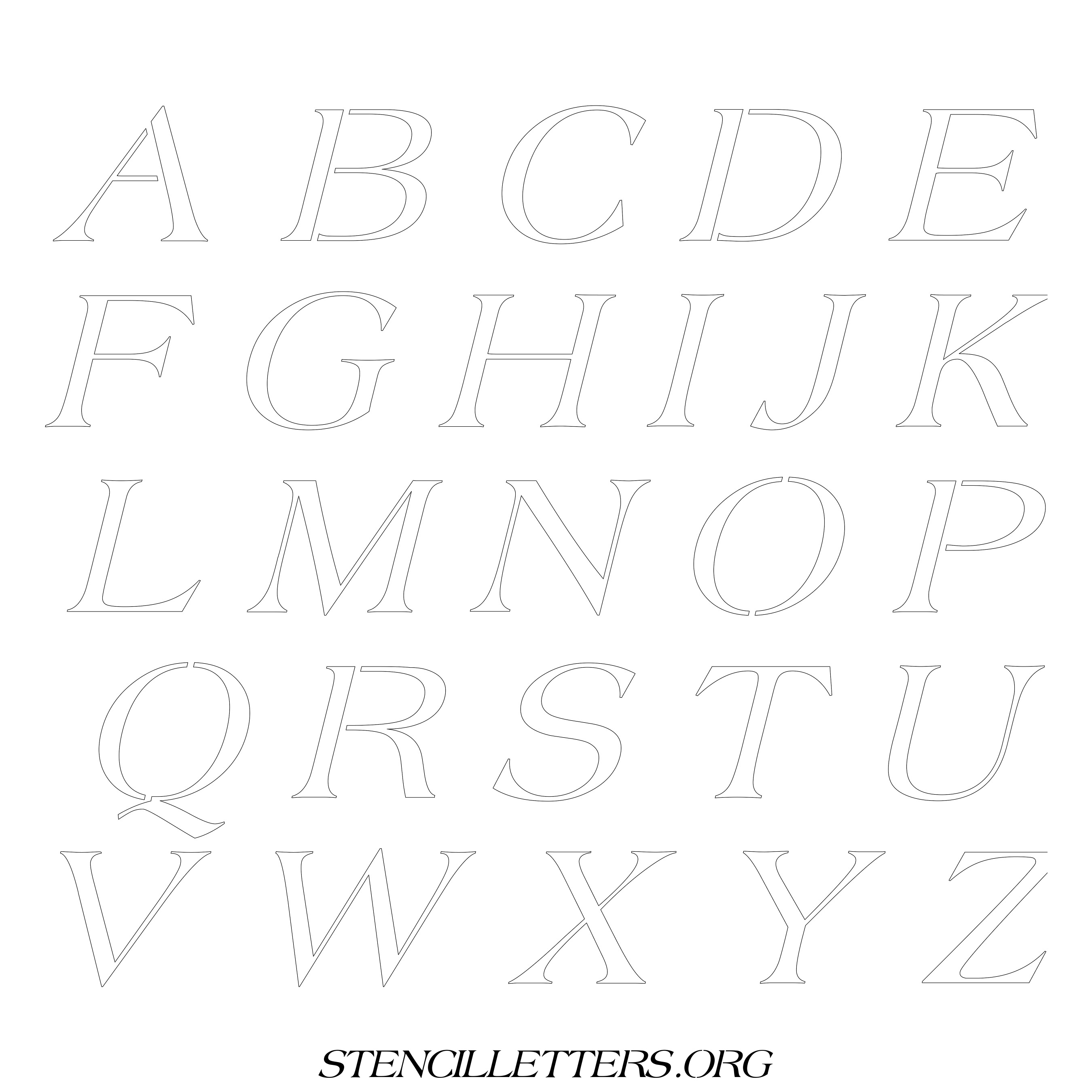 Printable Uppercase Alphabet Stencils - Design 37 Italic