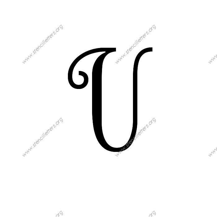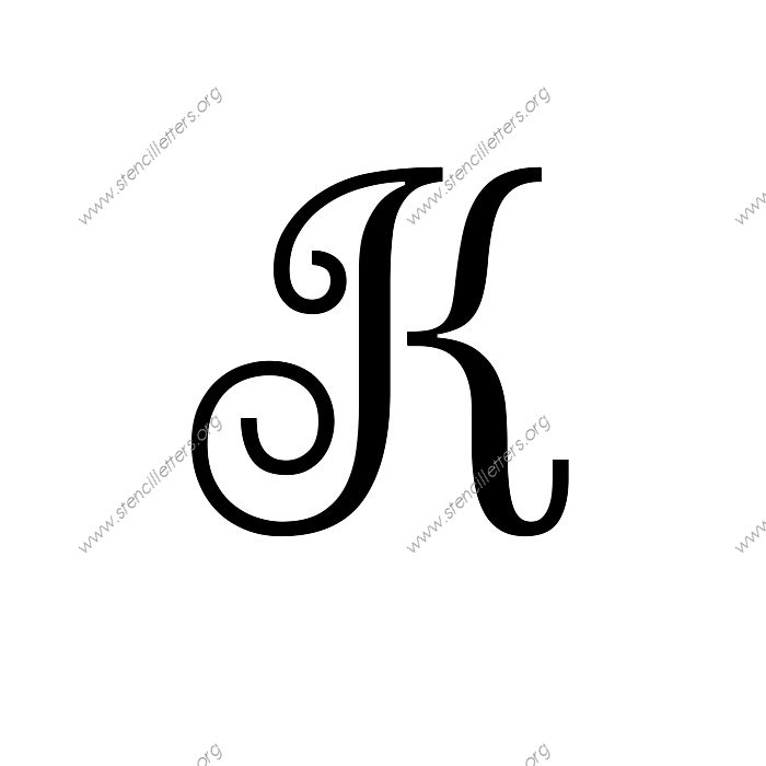 A cursive script with creative decorative looking letters. Add a graceful touch to your stencil project with these harmonious and eye pleasing alphabet stencils.