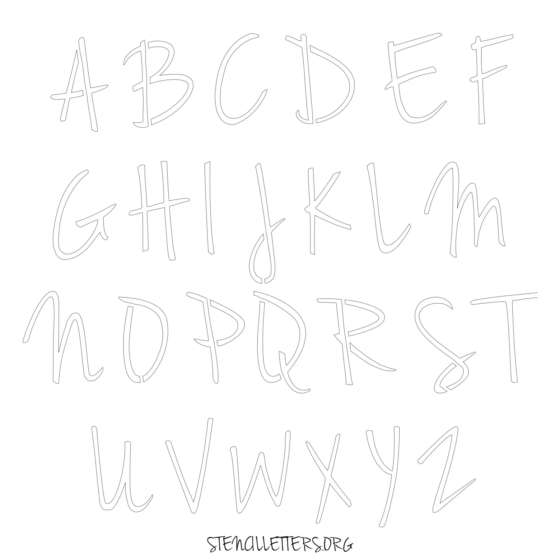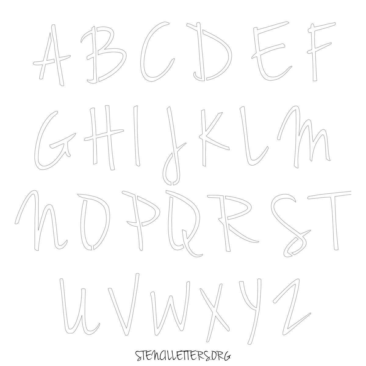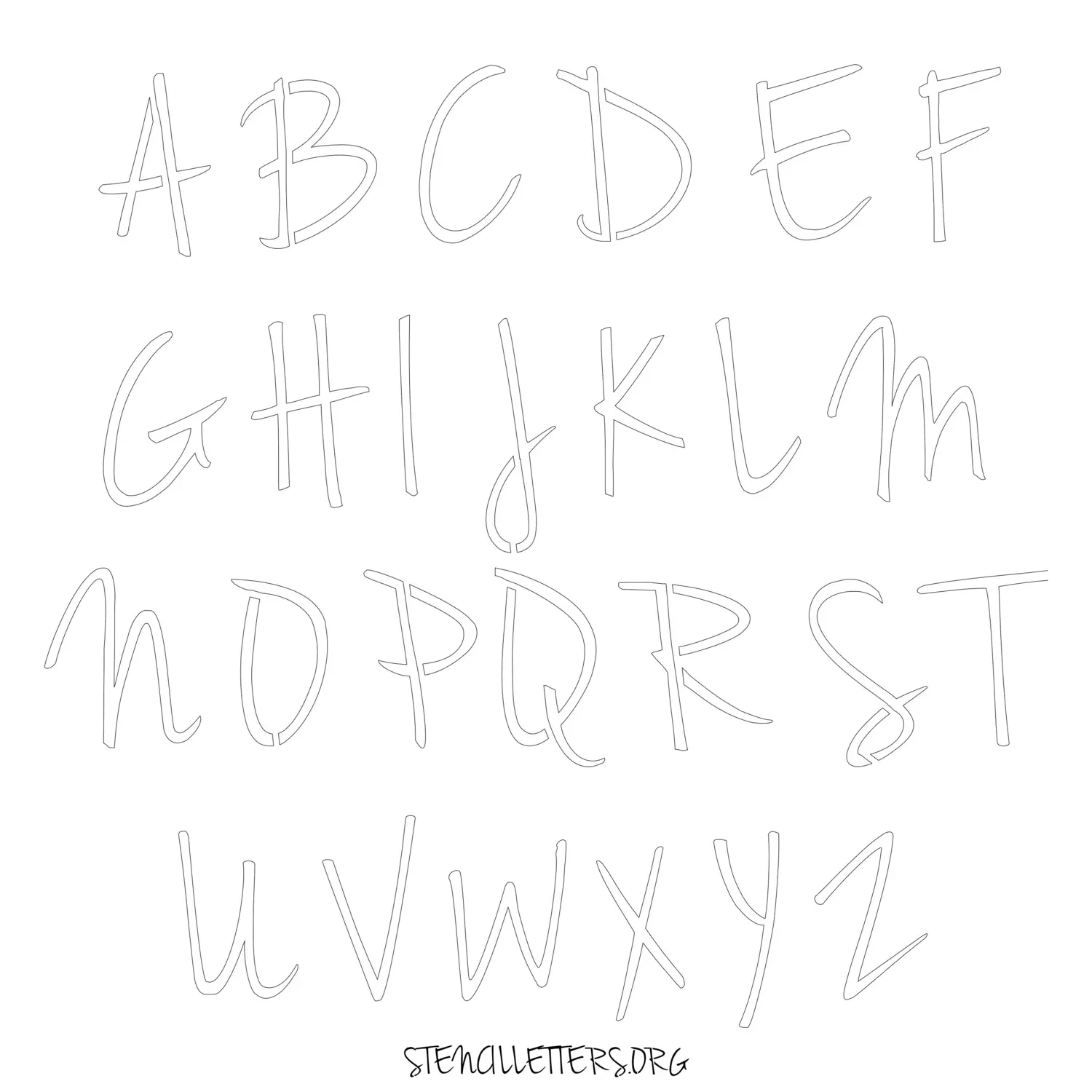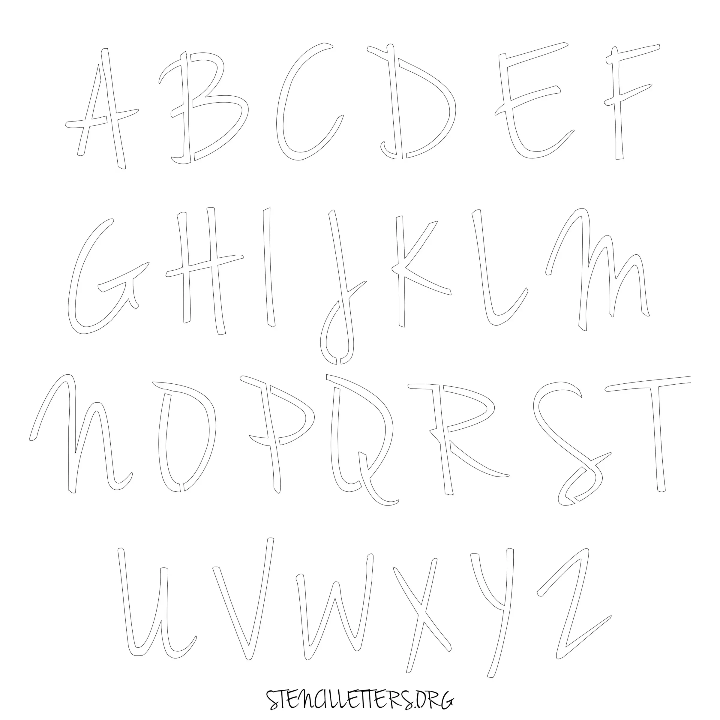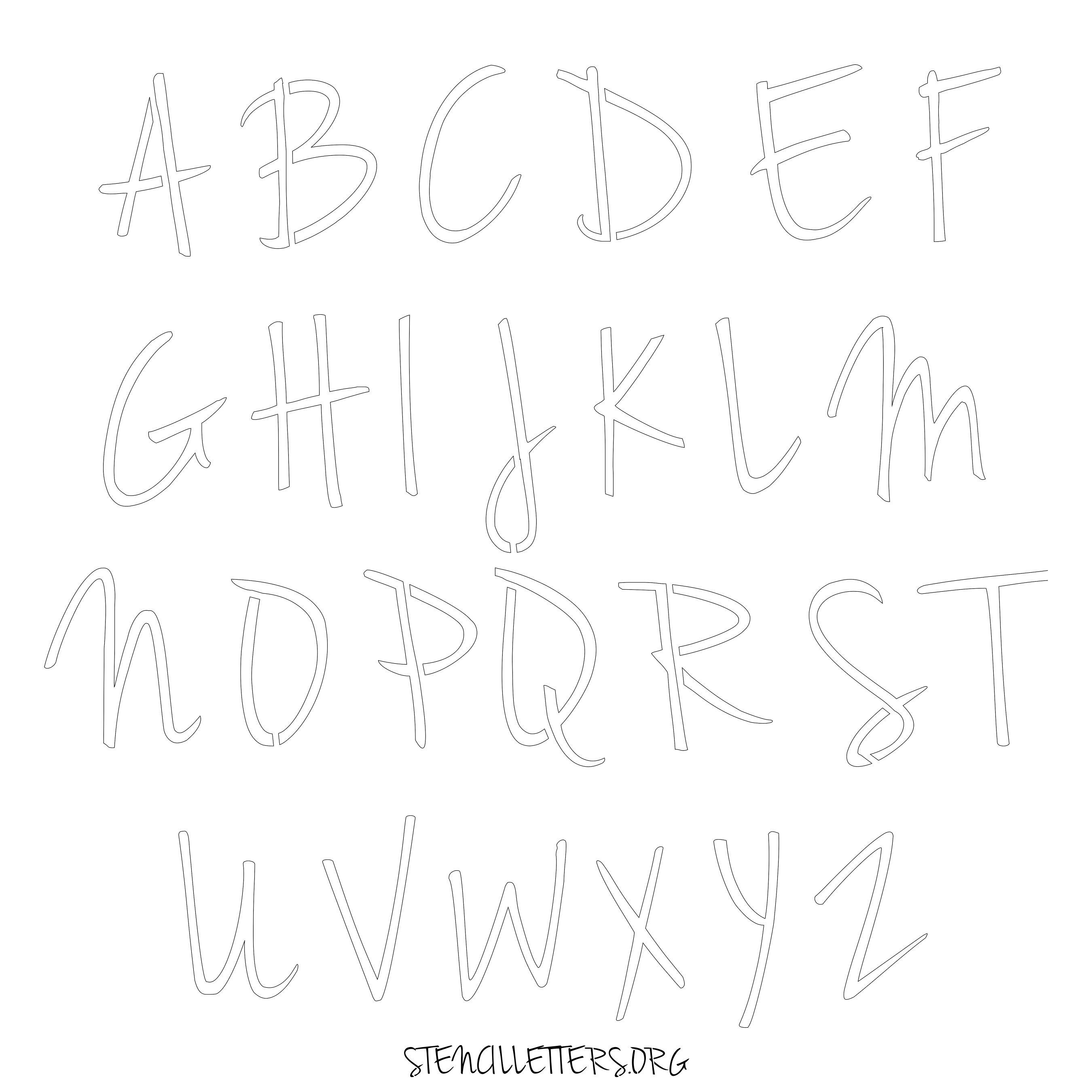 Stencil Design 134 Cursive. Print these free uppercase letter stencils and make your own DIY templates for your stenciling projects. Available in high resolution printable sizes: 4 Inch, 5 Inch, 6 Inch, 7 Inch, 8 Inch, 9 Inch and 10 Inch.