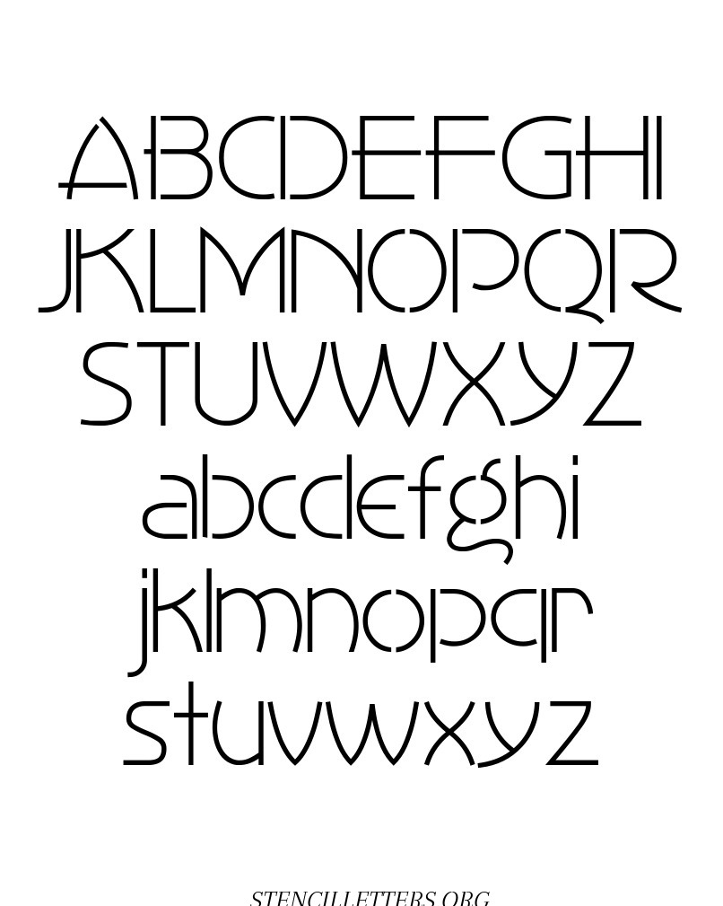 1930's Art Style free printable letter stencils in uppercase and lowercase with outline cutout alphabet letters.