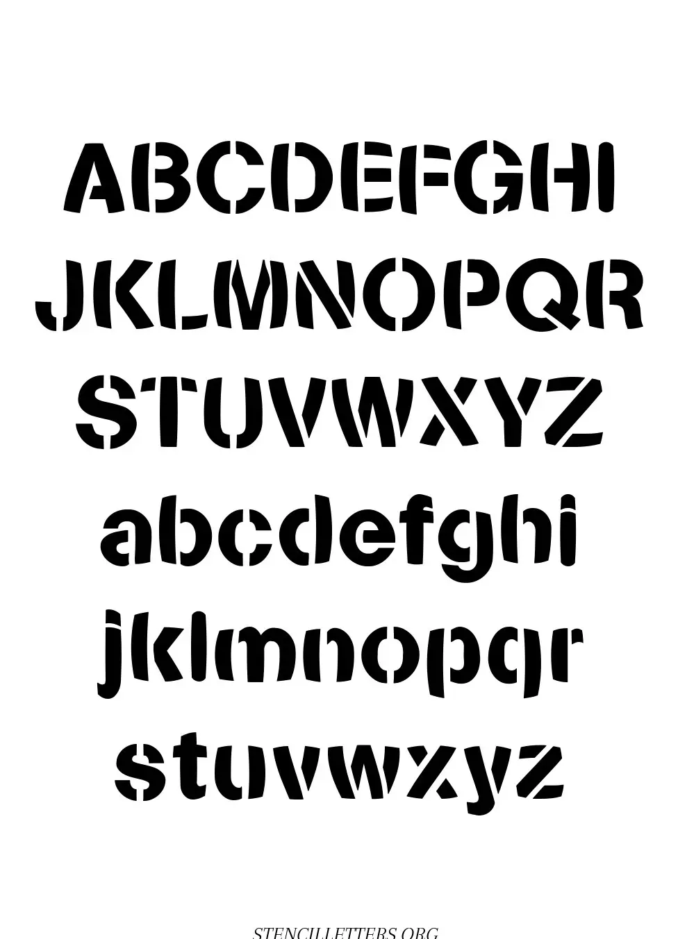 Artistic Bold free printable letter stencils in uppercase and lowercase with outline cutout alphabet letters.