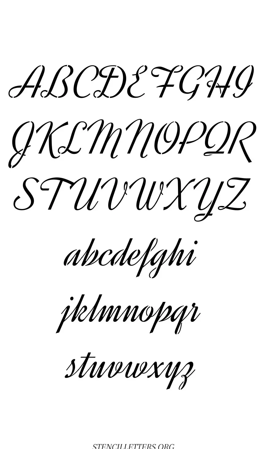 Free printable Retro Vintage Cursive standard and outline version letter stencils are available in jpg format below.