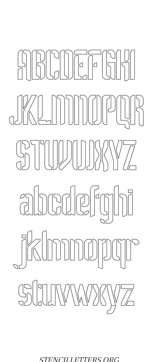 Sci Fi Futuristic Capital A-Z, small a-z free stencil letter templates to print and cut out.